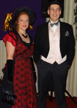 De ceremoniemeesters Mirna van Dartel en Luuk Elkink, in ouderwetse kleding, heten de bezoekers welkom en kondigen de sprekers aan